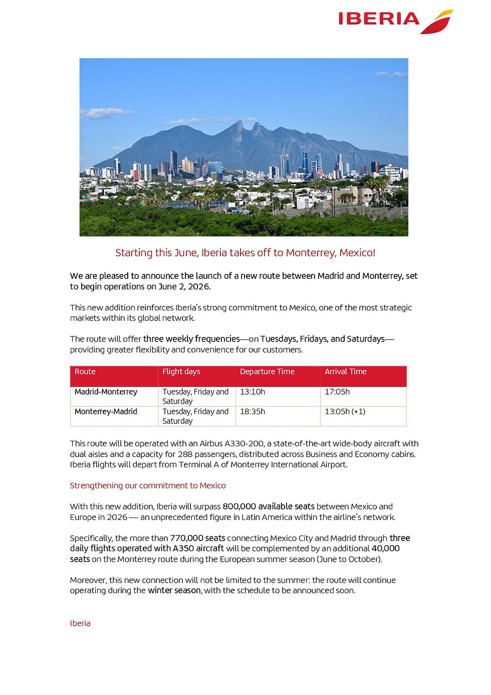 Starting this June, Iberia takes off to Monterey, Mexico!